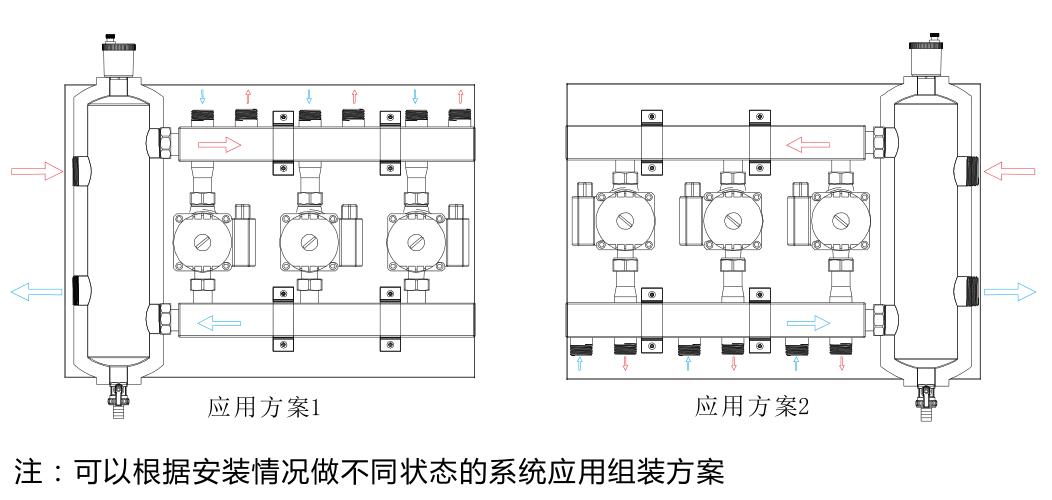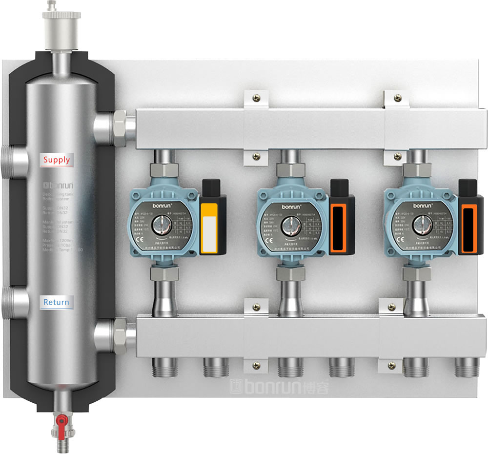 在大戶型采暖中容易出現(xiàn)水流量不匹配現(xiàn)象。利用博容去耦罐集成系統(tǒng)可以解決此問題,打造出一套舒適、穩(wěn)定的采暖系統(tǒng)。推薦別墅,復式樓等大面積采暖使用。 每路帶實鋪面積不超150平米.