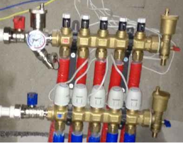 最簡(jiǎn)單的辦法是用手摸,上面已經(jīng)知道哪里是進(jìn)水管道了,不要摸塑料管道,摸進(jìn)水管的閥門(mén)溫度或者分水器的溫度,看看熱不熱,這個(gè)熱不見(jiàn)得要燙手,只要用手感覺(jué)溫?zé)?,能?5℃以上就可以了(歐洲標(biāo)準(zhǔn)水溫地暖水溫不得高于40℃),如果有溫度表,直接看水溫即可。如下圖中的多功能閥上有溫度計(jì),查看溫度是否符合要求。