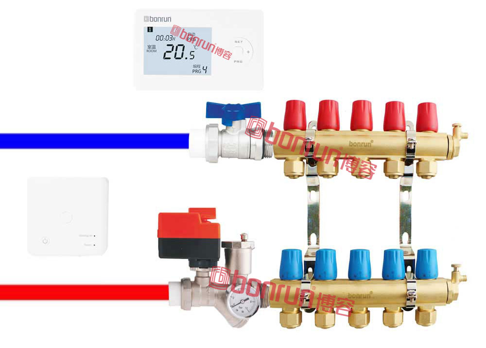 博容286比例流量調(diào)節(jié)手動(dòng)地暖分水器 +博容節(jié)能精靈無線分戶溫控套裝