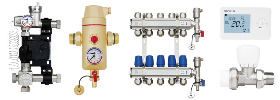 博容變形金剛混水系統(tǒng)、微泡排污排氣閥、分室溫控套裝、博容比例調(diào)節(jié)分水器、虎牢關(guān)溫控閥。