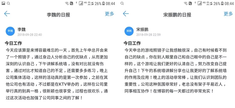 銷售部李魏、宋振鵬是剛加入博容不久的新同事,從他們的工作日志中可以看出,他們已經(jīng)完全融入了博容!