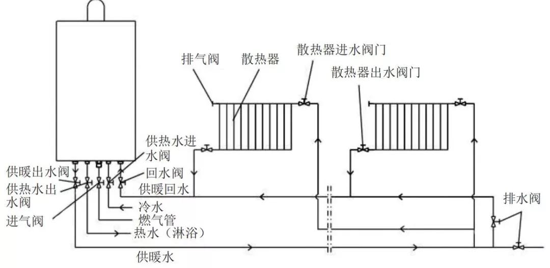 壁掛爐作為熱源,其功能是給末端散熱裝置提供熱量,這些熱量通過(guò)傳輸管道輸送給末端,然后通過(guò)末端散熱裝置發(fā)散到房間里。房間的恒溫狀態(tài)就是使末端發(fā)散到房間的熱量與房間發(fā)散到室外的熱量形成平衡,此時(shí)維持房間溫度不變。在整個(gè)采暖系統(tǒng)運(yùn)行過(guò)程中就是壁掛爐源源不斷地提供熱量,末端源源不斷地將熱量發(fā)散到室內(nèi),這就構(gòu)成一個(gè)完整的采暖系統(tǒng)(理想狀態(tài)下的采暖系統(tǒng)應(yīng)該是這樣的)。