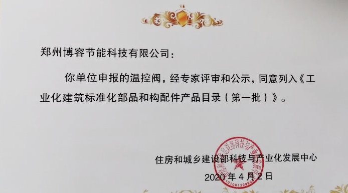 祝賀虎牢關(guān)溫控閥通過住房和城鄉(xiāng)建設(shè)部裝配式建筑審批