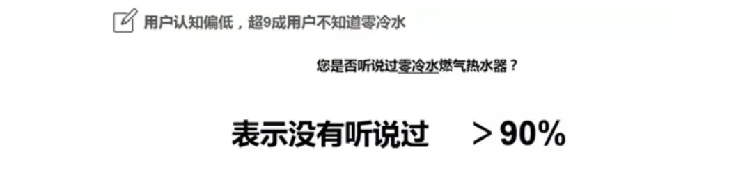 另一組數(shù)據(jù)佐證了這個推斷:針對普通消費(fèi)者的調(diào)查顯示,90%以上的消費(fèi)者是不了解零冷水熱水器產(chǎn)品,從來沒有聽說過的,只有5%的消費(fèi)者知道或者在使用這個產(chǎn)品。